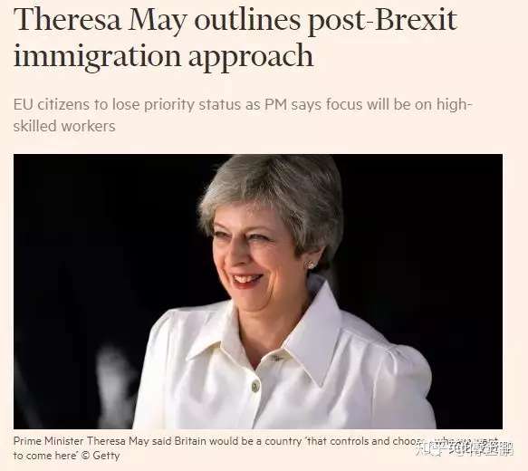 特蕾莎·梅的原话是这样说的:“新的移民系统将以高技术人才为主,而不是他们的身份。脱欧后,欧盟移民将不会得到特别照顾。我们会着眼于在全球范围吸纳我们真正需要的人才。”