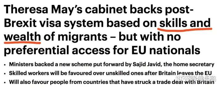 上图加红线部分是英媒总结的两大移民关键词,英国脱欧后只爱两类移民:Skill(能帮英国赚钱的高技能人才) & Wealth(直接带资入场的高净值人士)。